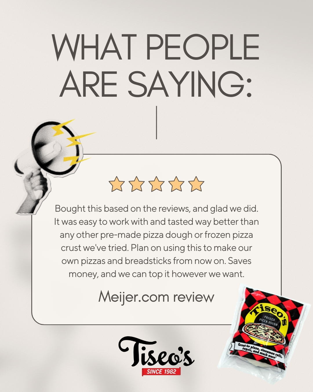 Tiseo’s Frozen Pizza Dough can also be used to create perfect cinnamon rolls, elephant ears, dinner rolls, and so much more! Find us in the frozen aisle and plan your next dough-licious treat!